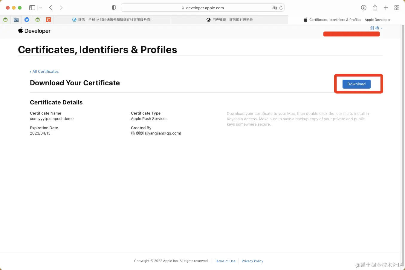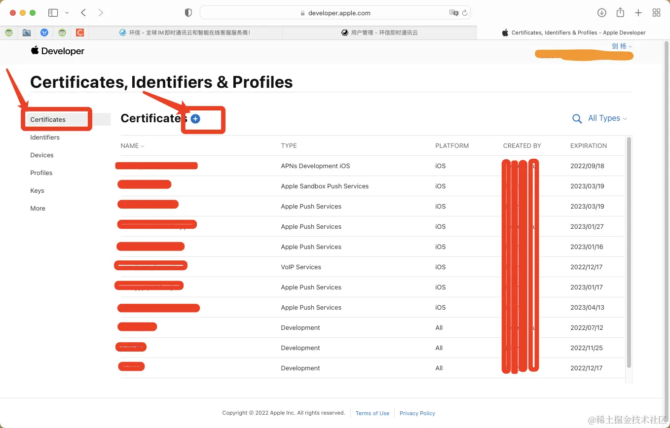 4.针对刚创建的bundle id开通并注册Certificates push 证书