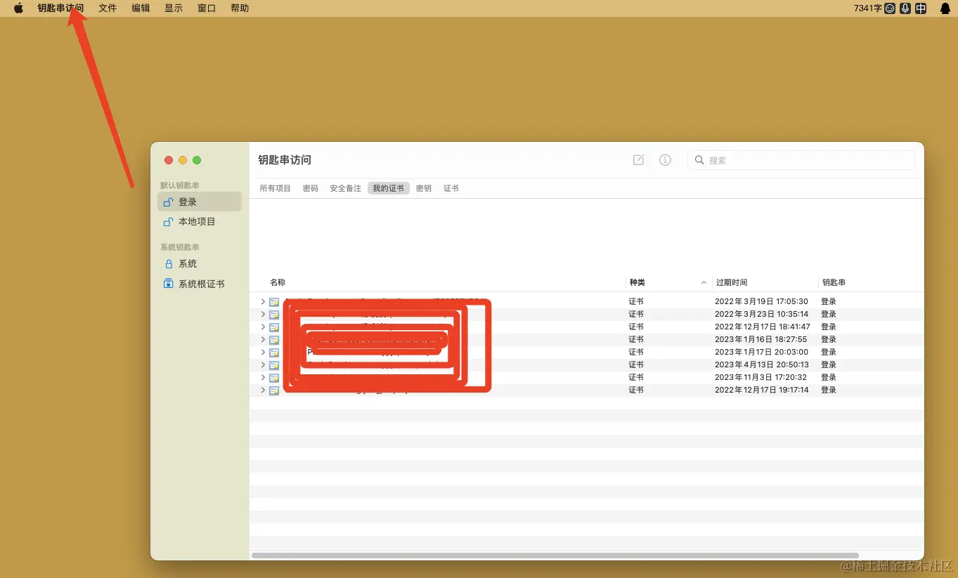 如果在《钥匙串访问》中出现"证书不受信任"的警告时,可以去苹果官方网站下载G4证书,并双击打开即可