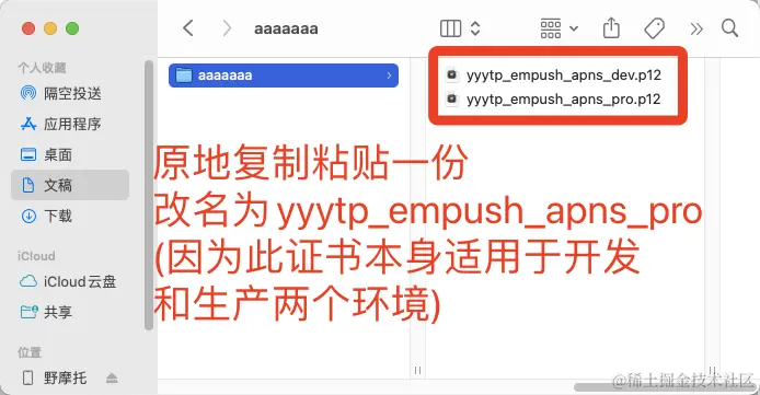 (因为申领的证书是双环境的,所以导出的p12文件直接复制成双份即可)