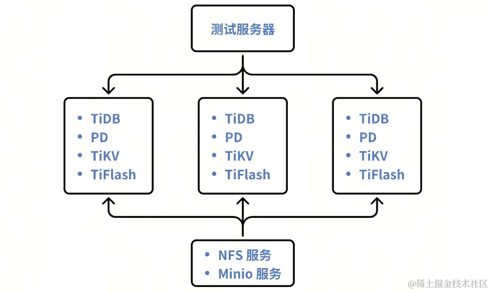 - TiDB 资源:3 台 16VC/64GB 虚拟机 + 500GB SSD 云盘(3500 IOPS + 250MB/S 读写带宽)