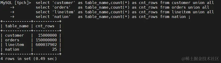 tpch.customer,tpch.orders,tpch.lineitem,tpch.nation