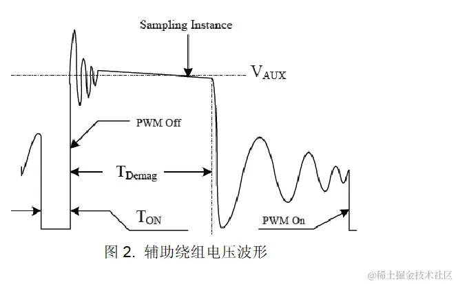 同时,辅助绕组反射输出电压,具体如图 2所示,计算公式如下: