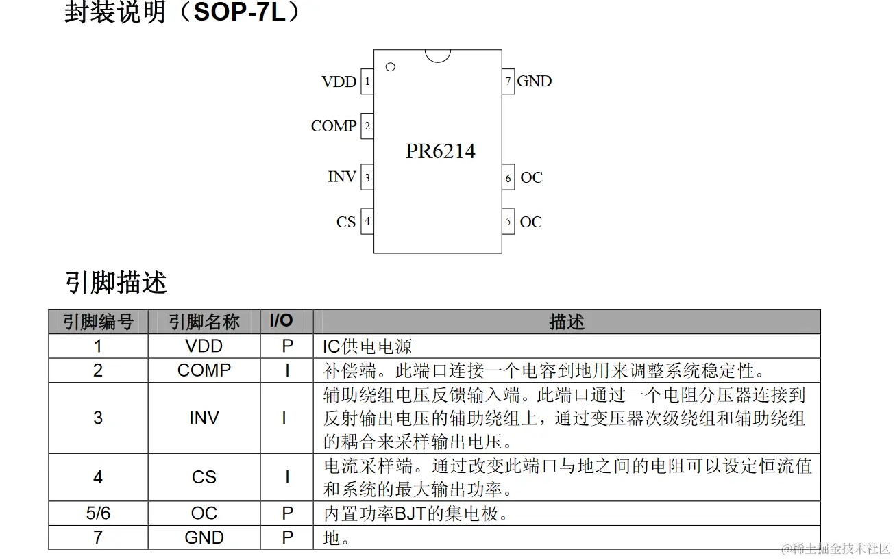 为了实现 PR6214 的恒流/恒压控制,系统必须工作在反激式系统的断续模式。(参照典型应用电路)