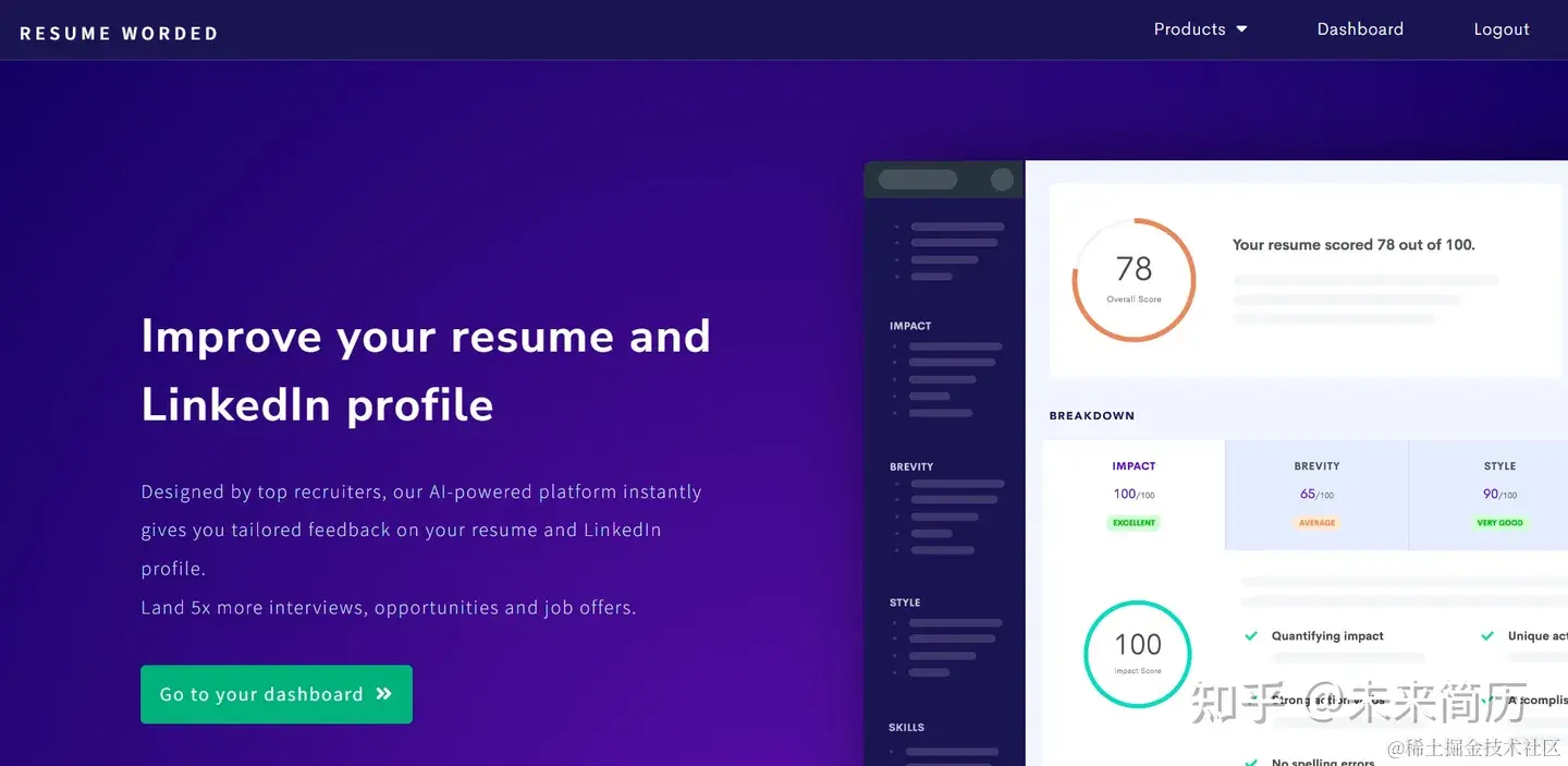 Resume Worded 是一款人工智能简历分析器,可将您的简历与专业简历进行比较。 这使您可以根据招聘人员的要求定制简历。