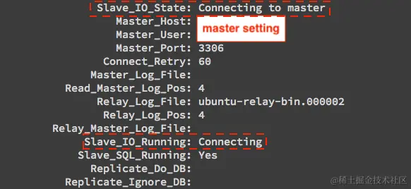 第三步 :配置 SlaveDB,指定 Master DB 登录信息,并启动数据复制