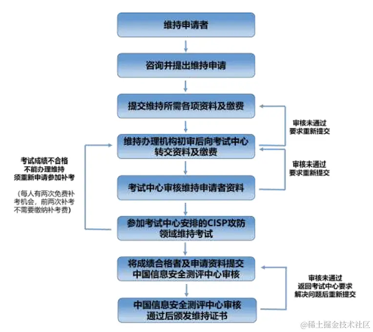 持有以上资质的人员,当证书有效期届满三年、需要进行资质维持时,须参加 CISP 攻防 领域注册资质维持测评考试,且考试成绩合格,经中国信息安全测评中心审核通过后,方可办理资质维持续证。