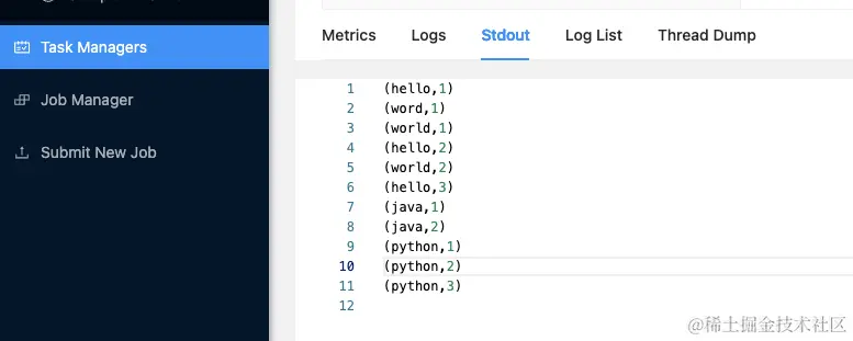 就可以在 task manager 的 stdout 看到打印结果了。