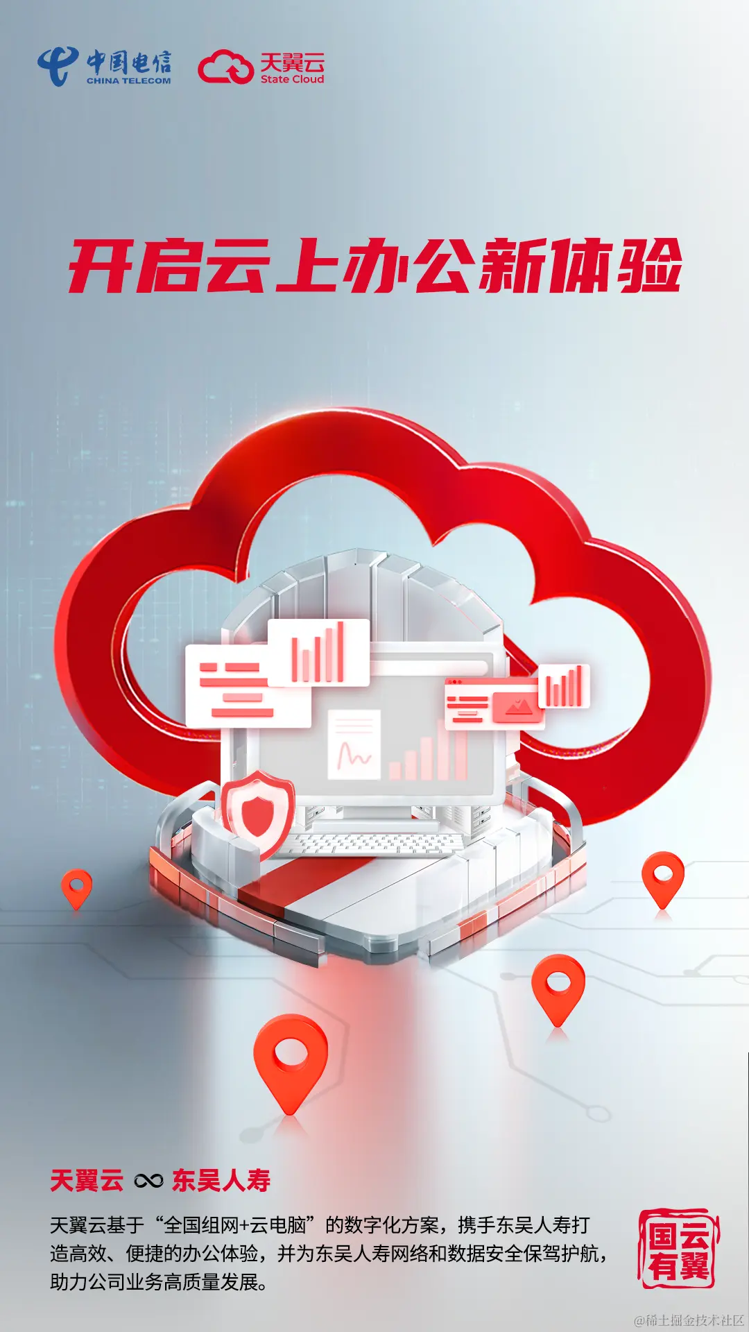 在这场金融数智变革中,位于苏州的东吴人寿保险股份有限公司(以下简称“东吴人寿”)主动适应监管要求和行业趋势变化,推进信息化建设,努力构筑新型寿险公司竞争优势,为千万用户提供更加个性化、专业化的保险服务。基于“全国组网+云电脑”的数字化方案,天翼云向东吴人寿提供高效、便捷的办公体验,并为网络和数据安全保驾护航,助力公司业务高质量发展。