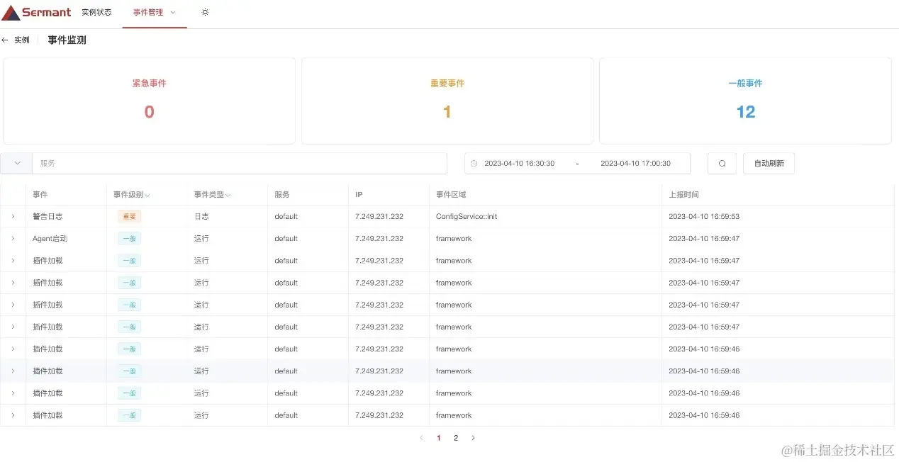 针对可观测性,我们建立了对Sermant运行状态及服务治理能力状态的监控机制,用户能够更直观,更清晰的看到Sermant进行服务治理的过程,可用于快速了解Sermant运行状态及当前已生效的服务治理能力,使服务治理有迹可循。用户通过访问Backend,可在前端页面直接看到Sermant运行状态,服务治理能力触发的事件以及Sermant服务运行期间产生的警告、错误等日志信息。 Sermant的自观测能力解决了JavaAgent难以运维观察的问题,对使用Sermant来进行微服务治理的用户来说很好的实现了Agent的管理。