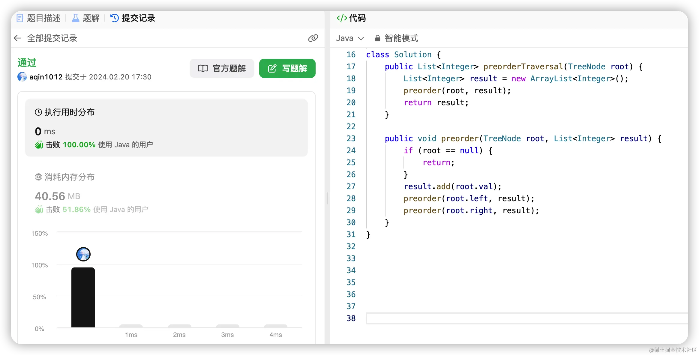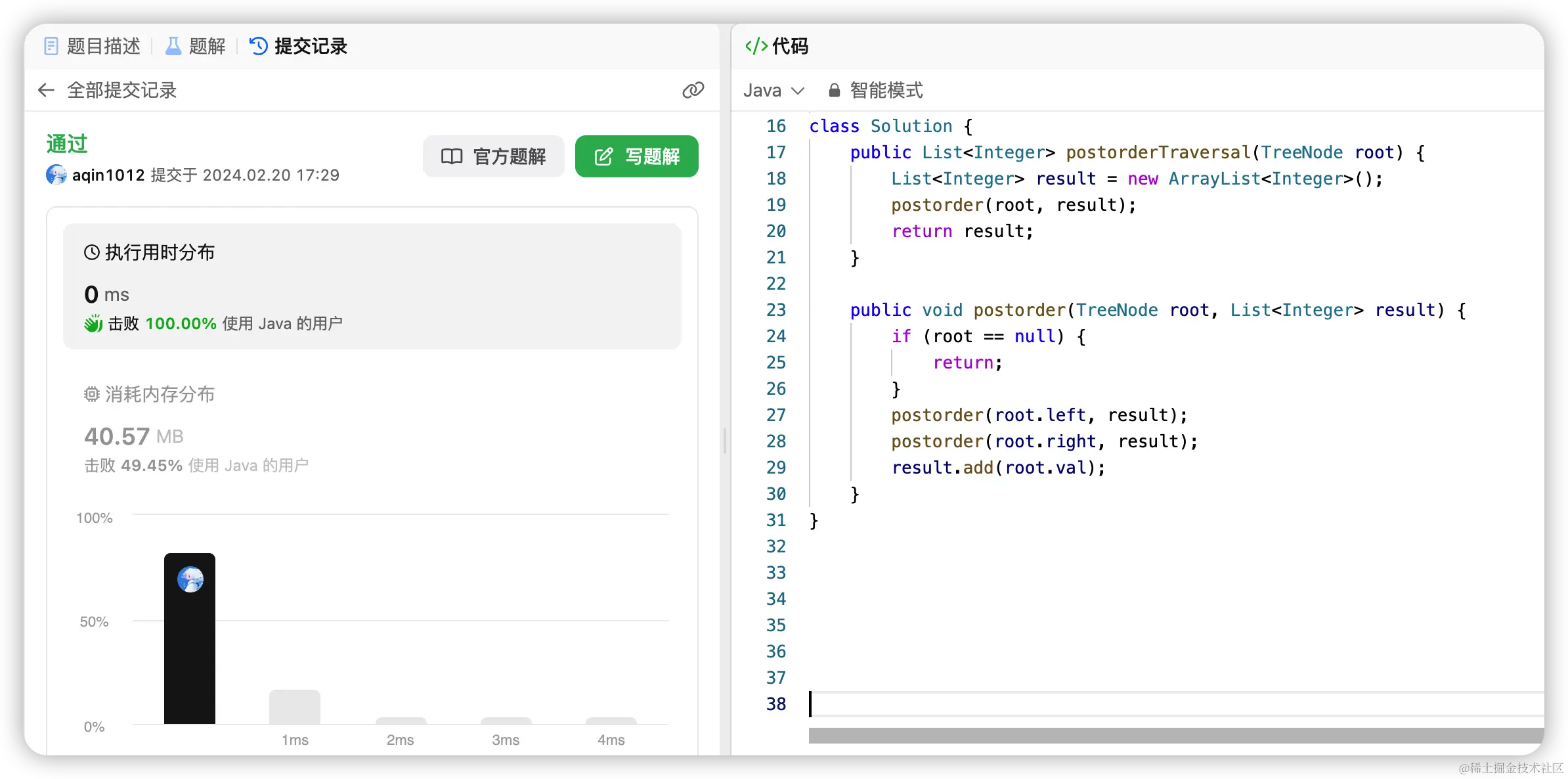 可是迭代法就没那么简单了,我第一次写的时候三种遍历除了都用了while循环都用了栈结构,其他的逻辑都是重新捋的,并不像👆迭代法一样,写出一个,另外两种遍历改下顺序就成= =,But不应该啊🤔🤔🤔🤔🤔🤔🤔