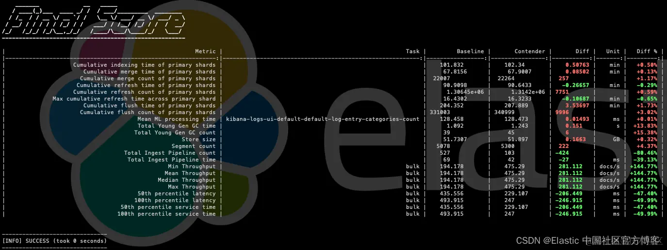 在许多情况下,这些测试可用于评估不同版本的 Elasticsearch 或底层硬件,以及已部署的集群。 然而,在这种特殊情况下,请务必记住,如果集群已经运行并提供流量,则由于并行使用会影响结果,因此指标可能不准确。 然而,给定的值仍然可以用于以后的评估和比较。