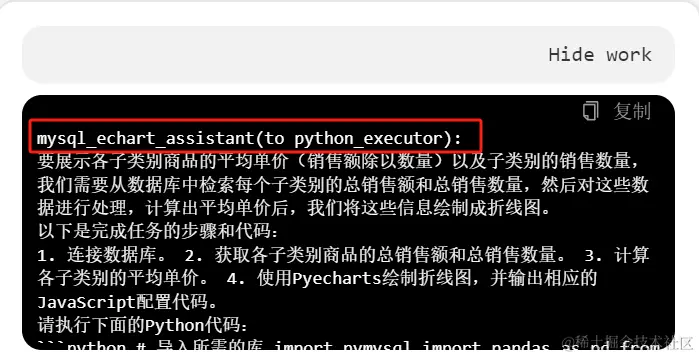 3、任务步骤和代码生成: base_echart_assistant提供了详细的解决方案并自主生成相应的Python代码。