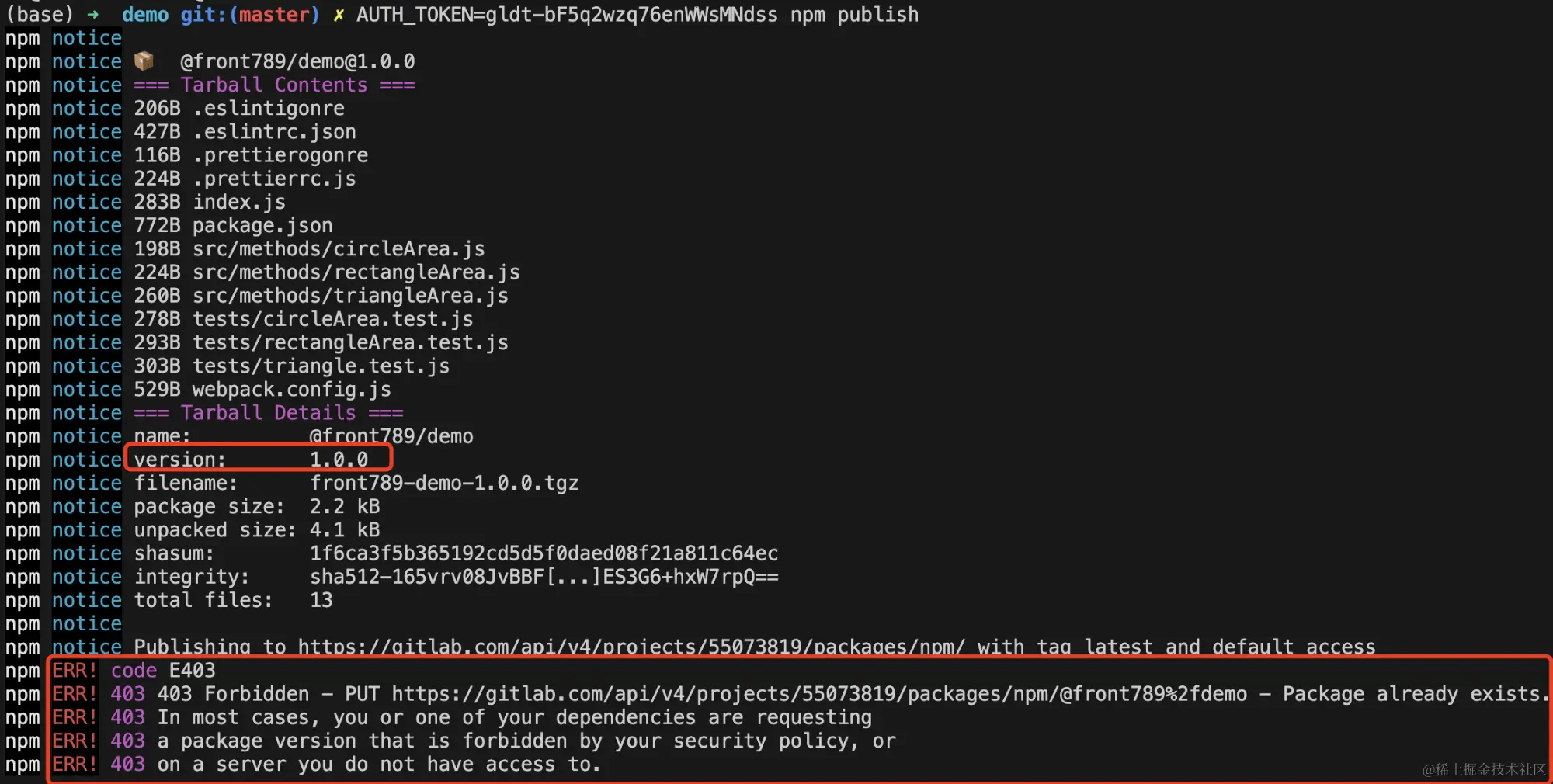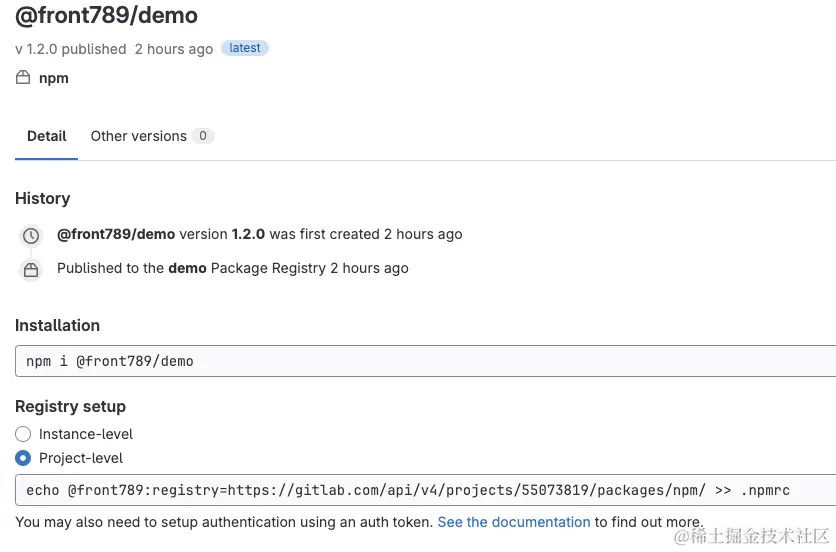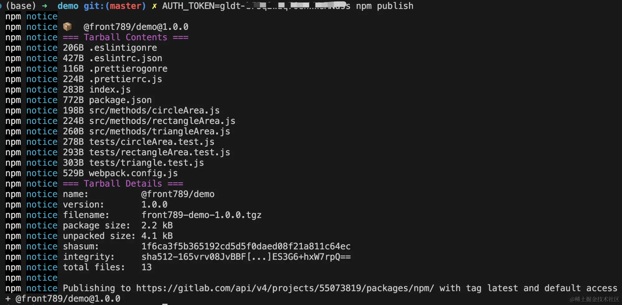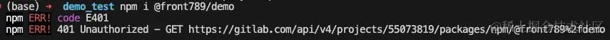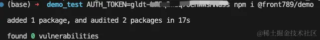 那么我们就可以在cli中执行AUTH_TOKEN=gldt-xxx npm i @front789/demo