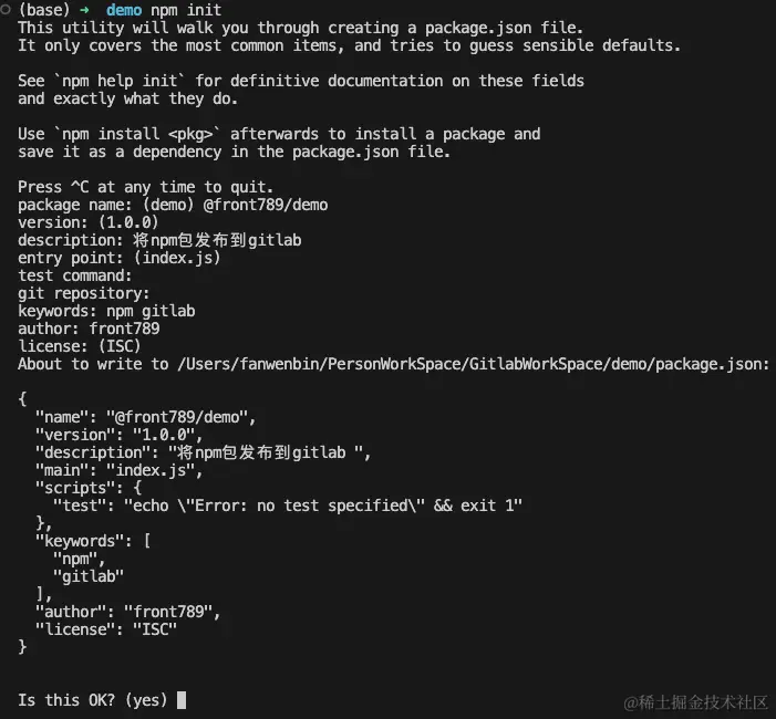 下面是我们习以为常的初始化项目的流程,其中有些值需要按照自己的项目而定,或者一路回车也可以。