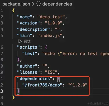 让我们随意在一个新项目(demo_test)中执行安装命令npm i @front789/demo