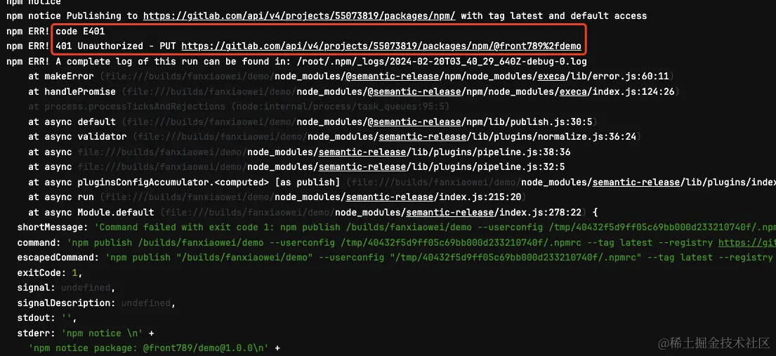 当我们看到401 Unauthorized的错误是不是感觉到似曾相识。我们在利用CI/CD发布包时也遇到过。因为我们在新建项目的时候,就是选择了私有。