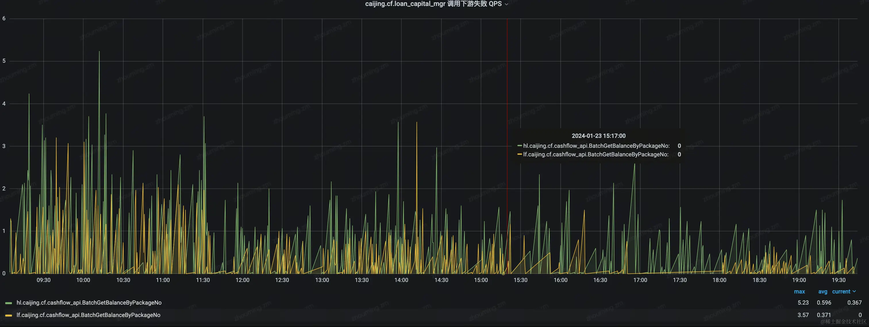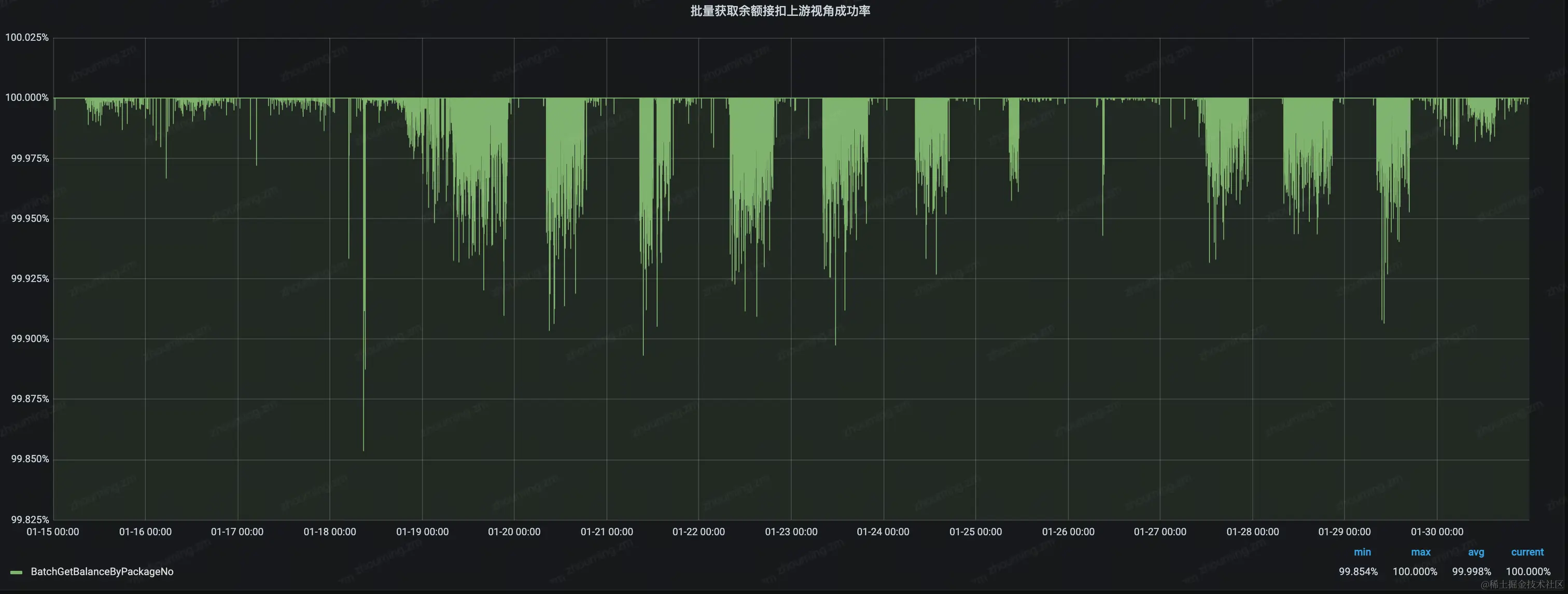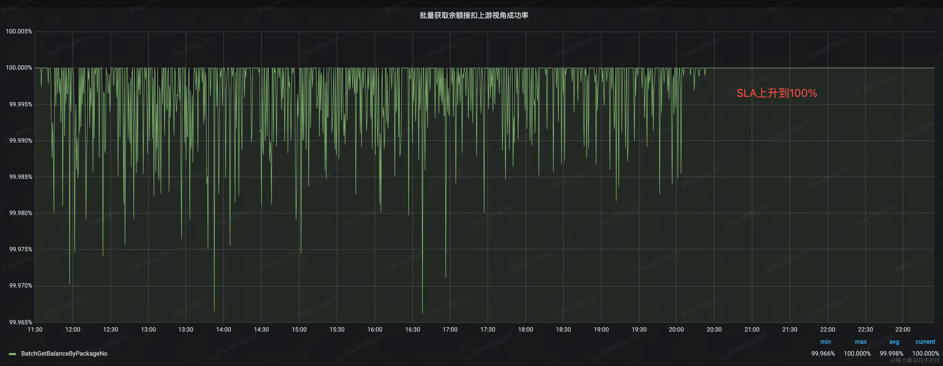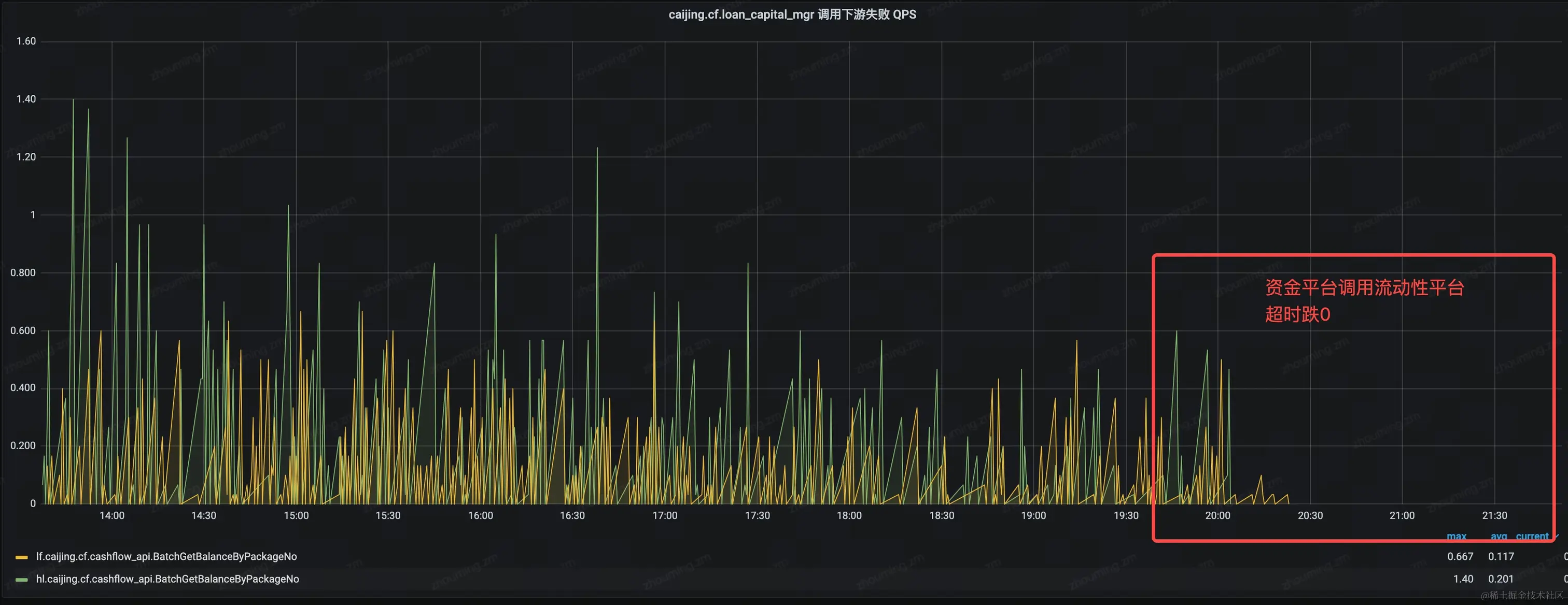某个酷似夏天的冬天,发现资金平台调用流动性平台批量查询资金包余额接口(BatchGetBalanceByPackageNo)有大量的RPC调用超时失败告警,最近半个月上游视角SLA一度降到99.854%,而该链路属于L0链路,目标SLA是99.995%,所以需要排查处理以确保SLA满足要求。