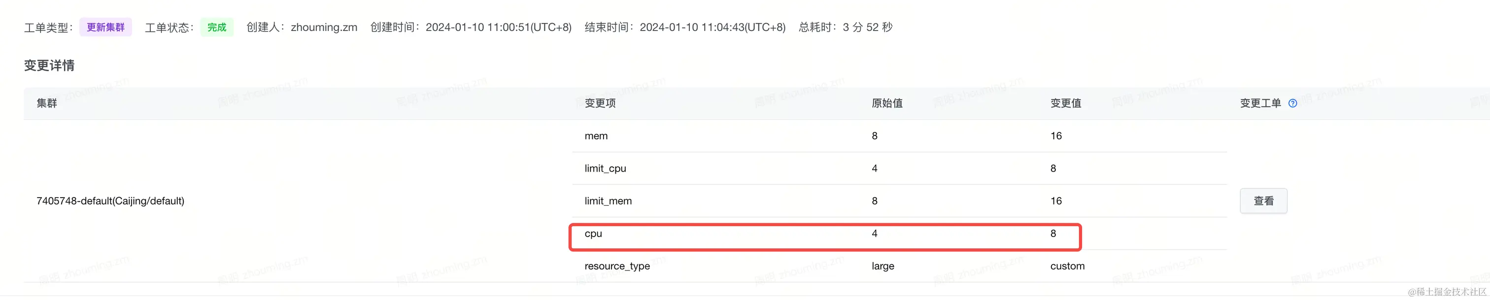 既然CPU受限,扩容后又没有效果,所以考虑是否把POD的CPU核心数扩大,给POD分配更多的CPU时间就能解决问题?于是把server端的POD的CPU核心数从4库容到8
