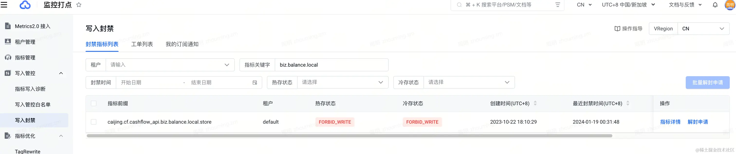 监控打点封禁查询:cloud.bytedance.net/metrics/sel…