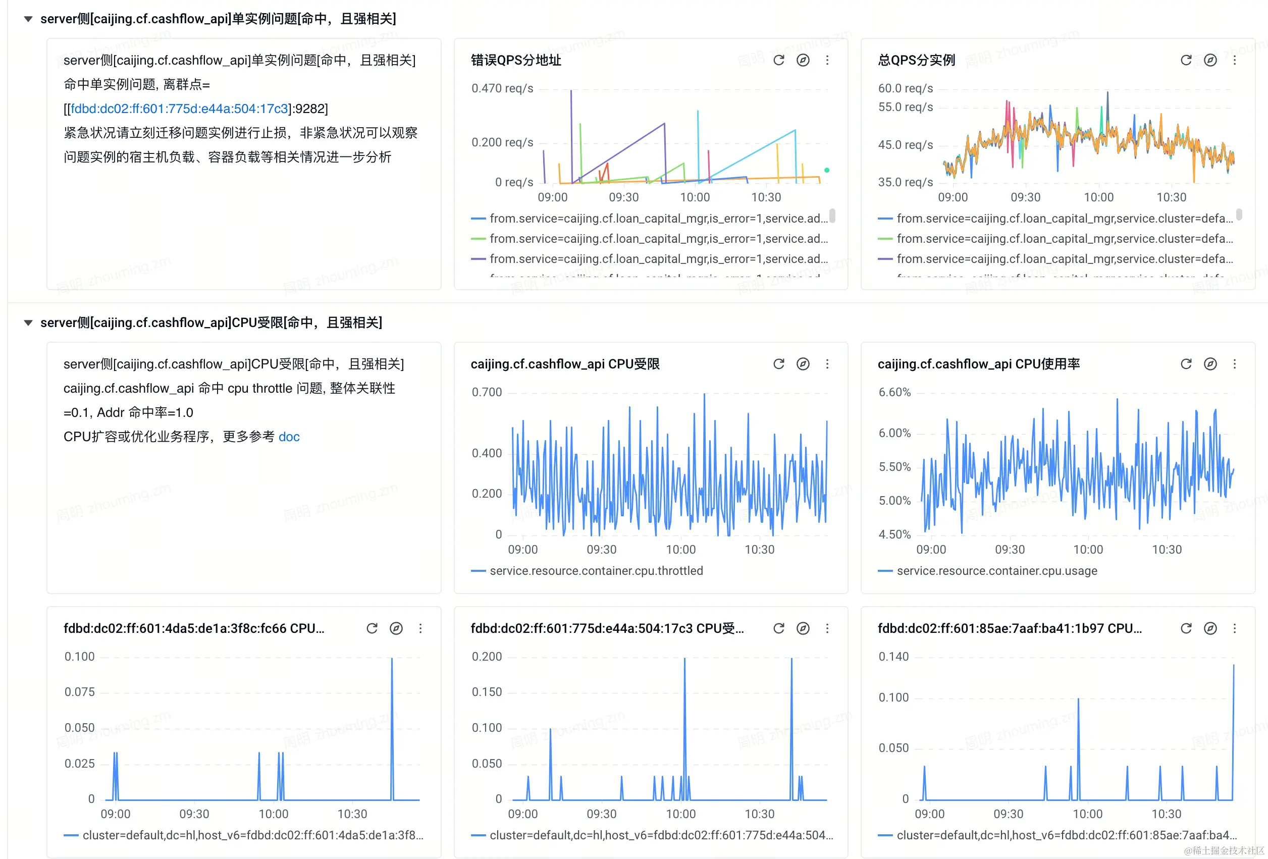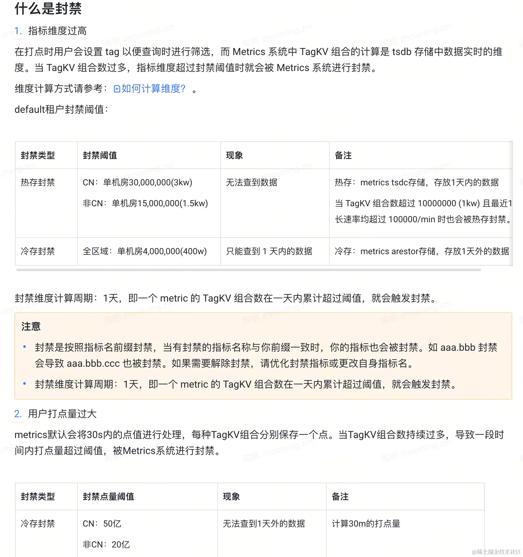 - 监控打点要注意打点的维度以及数量,不要超过监控打点封禁的阈值,否则可能占用CPU过高影响服务。