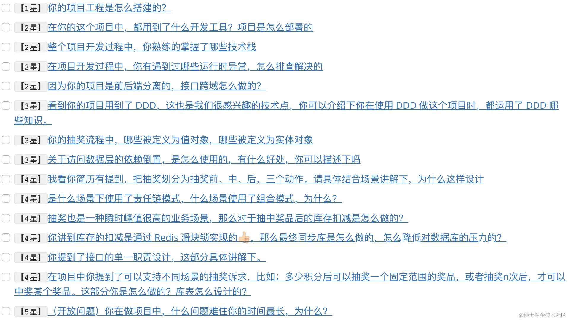 - 抽奖也是一种峰值流量高的业务场景,因此在设计奖品库存扣减上,采用了 Redis decr 分段消费和加锁兜底的设计,同时对于消费成功的库存,异步队列方式 + 定时任务更新库存。这样可以不超卖的同时,又减少数据库的压力。