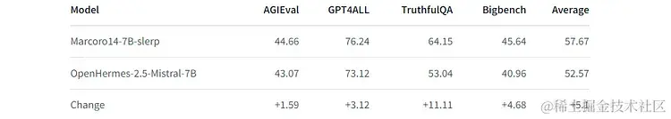 你可以在 Hugging Face Hub 的 mlabonne/Daredevil-7B[20] 上找到它。它也是本文中最好的合并模型,甚至优于 Marcoro14-7B-slerp。