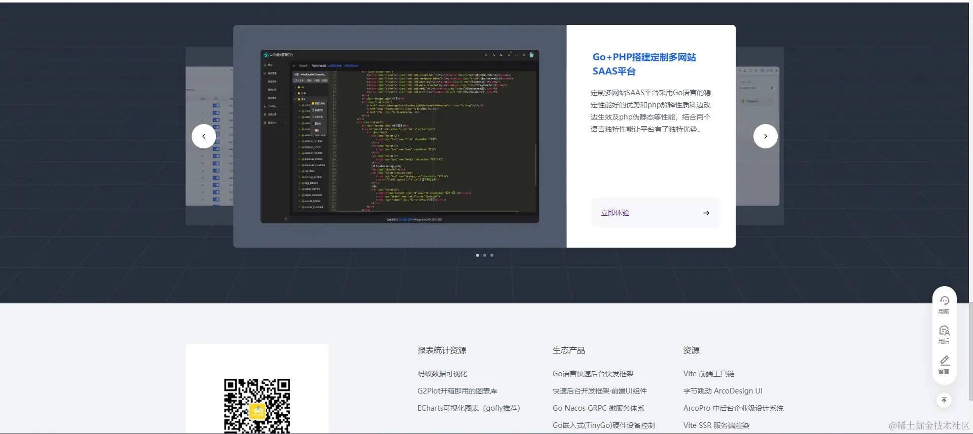为Go开发者介绍一个好用的Go语言开发社区、框架成熟好用、全栈开发资源全、一个社区就可以帮助你把前后端各个端开发出来。 GoFly开发者 2024-02-20 88 阅读1分钟 推荐的社区是专门为Go语言开发提供高效、可靠、安全的开发框架及全栈资源,社区名叫“GoFLy全栈开发社区”,关注一站即可开发全部应用。社区提供开源版和企业版go语言快速开发框架、前端的vue框架、app开发uniapp和鸿蒙应用框架资料、pc端框架、小程序等社区封装的框架都是基于简单易用。社区有技术交流论坛、开发者可以把自己需要问的问题提交,社区技术员及其他开发者会给你解答。