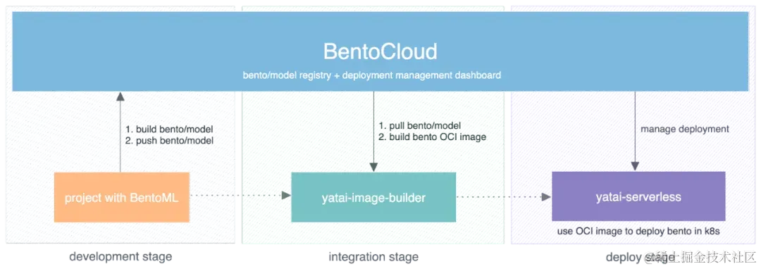 BentoCloud 是一个使 Bento 可以部署在云上的平台,一般开发任务分为三个阶段: