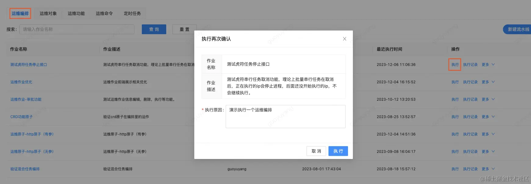 支持两种执行模式,可以在运维功能下面直接针对运维功能进行执行,也可以通过运维编排功能,将运维功能编排成自动化的运维场景执行。