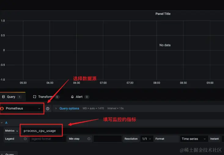 点击导航栏上的 + 按钮,并点击Dashboard,将会看到类似如下的界面