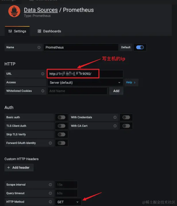http://ip地址:3000默认登录账号密码:admin/admin - prometheus访问地址:
