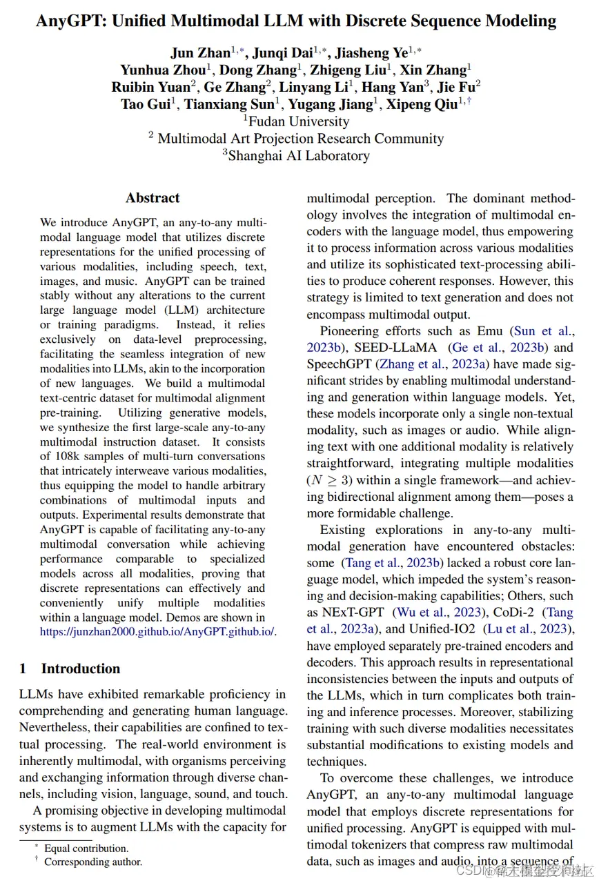 AnyGPT: 统一的多模态大语言模型与离散序列建模