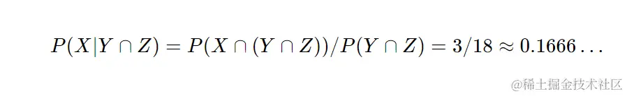 - 然后,我们看到_P(X | Y ∩ Z) ≈ 0.1666…_。