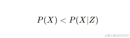 最后,知道P(X) < P(X | Z),我们得到了我们正在寻找的东西: