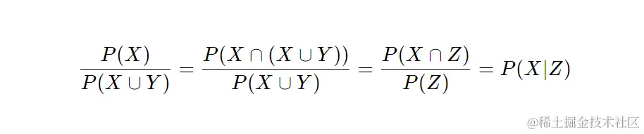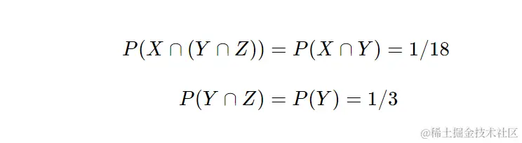 接下来,我们用一个小技巧。因为(Y ∩ Z) = (Y ∩ (X ∪ Y))实际上就等于Y,这里的逻辑是,如果Y已经发生了,不管X是否发生,都不会影响Y的发生。而X和Y是独立的,这意味着它们平时互不干涉。