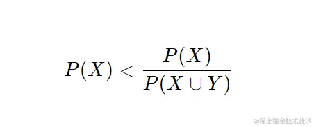 现在,如果我们将这个严格不等式两边除以P(X ∪ Y) ,然后乘以P(X) ,我们得到: