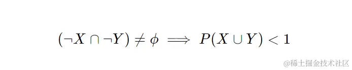 通过假设两个事件有可能不同时发生(例如,不患胆囊炎和不患糖尿病的人),前面的陈述可以变成严格的不平等;因为集合(X ∪ Y)不是样本空间 Ω: