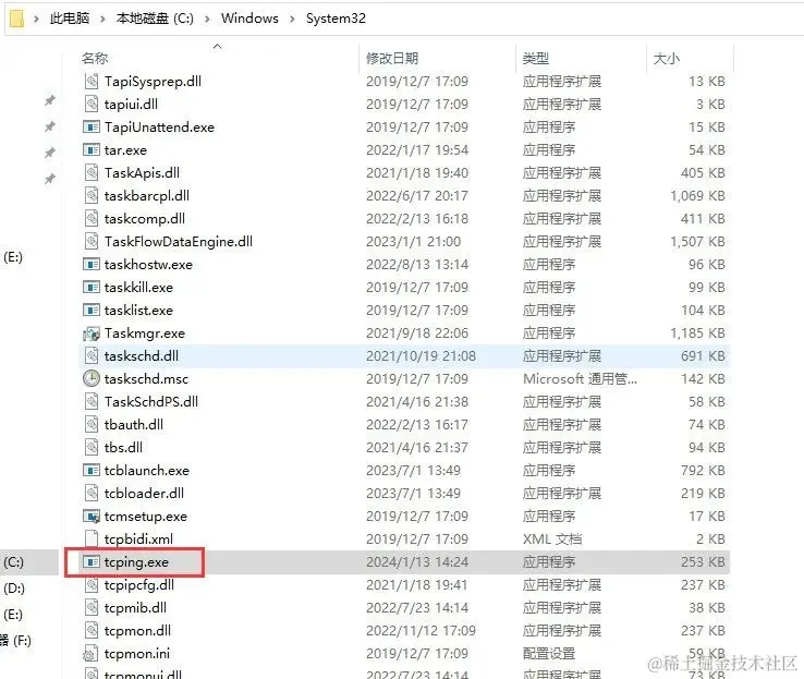 2.下载完成后把tcping.exe复制到C:\Windows\System32目录下,不需要安装