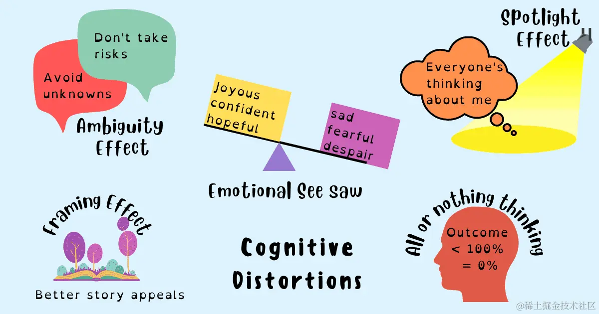 人类的大脑在极端情况下会呈现出不可理喻的一面,从而妨碍我们做出正确的决策。本文介绍了5种常见的认知谬误,识别并克服这些认知谬误,可以帮助我们更好的决策。原文: Want to Make Better Decisions? Avoid These 5 Cognitive Distortions