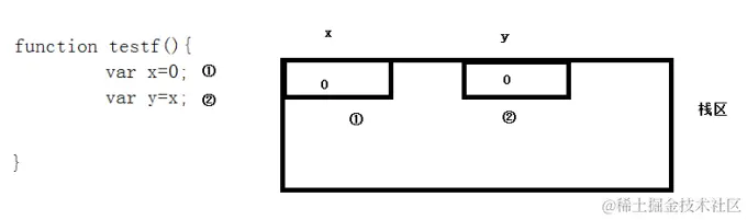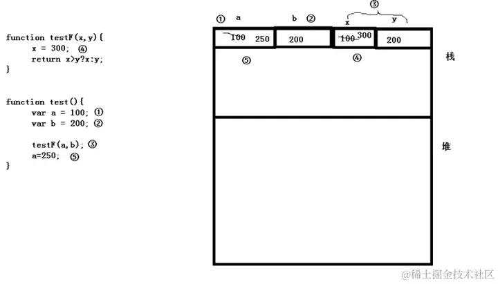 现在只看栈区和堆区,不管其它区域,也假定只是局部变量。
