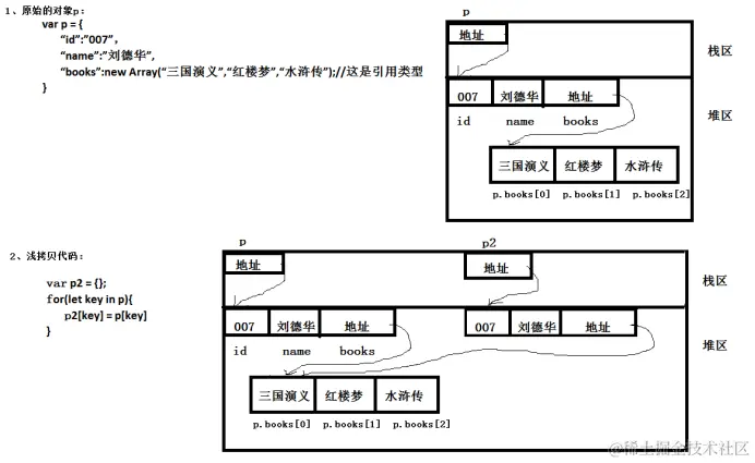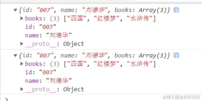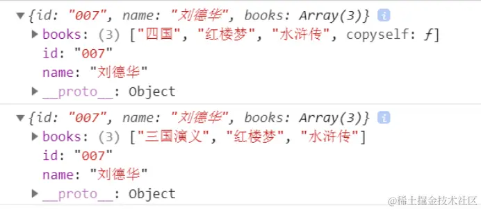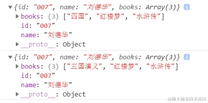 在控制台中打印的结果(只有p2的books[0]变成了“四国”)