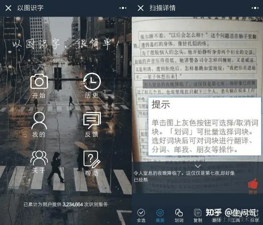 OCR 图片文字识别工具,可以将书上的打印体扫描到手机上,转换为可以修改操作的文本。识别率很高,支持划词转换,可以通过点击选择文本的某部分单独转换。