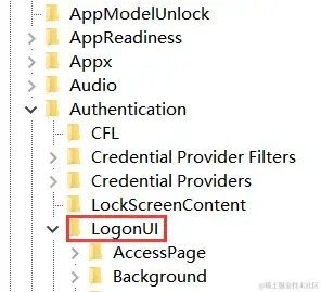第二步:导航到HKEY_LOCAL_MACHINE\SOFTWARE\Microsoft\Windows\CurrentVersion\Authentication\LogonUI,找到“OEMBackground”项。