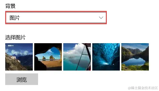 第三步:在 “背景” 下拉菜单中选择图片、Windows聚焦或幻灯片放映作为锁屏壁纸,然后点击预览按钮进行查看。