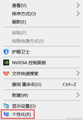 第一步:右键点击桌面空白处,选择 “个性化” 。