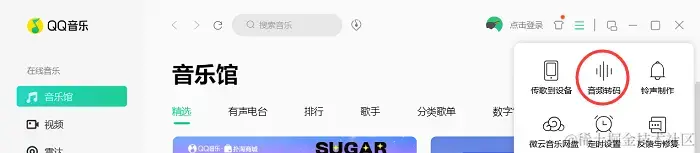 一些音乐软件会自带音频转换功能,这里以QQ音乐作为例子。在设置窗口找到 【音频转码】 功能,然后在打开的窗口导入mp4文件,并选择要转换的mp3格式进行转换即可。