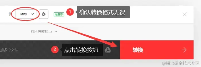 步骤3:确认转换格式无误,点击 【转换】 按钮开始转换过程。转换完成后,下载转换后的MP3文件到你的电脑上。