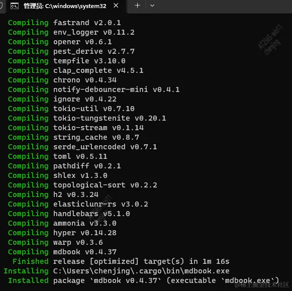 本机环境是win11。mdBook是写的 Rust 因此需要Cargo编译