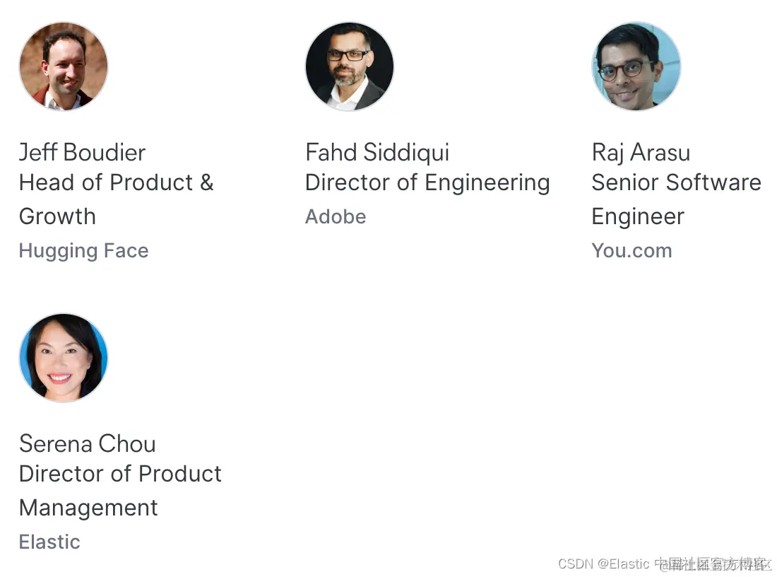 你将听到我们的行业嘉宾专家小组的演讲,每个人对于设计和构建世界一流的搜索(以及使这些体验成为可能的工具)都有独特的视角: