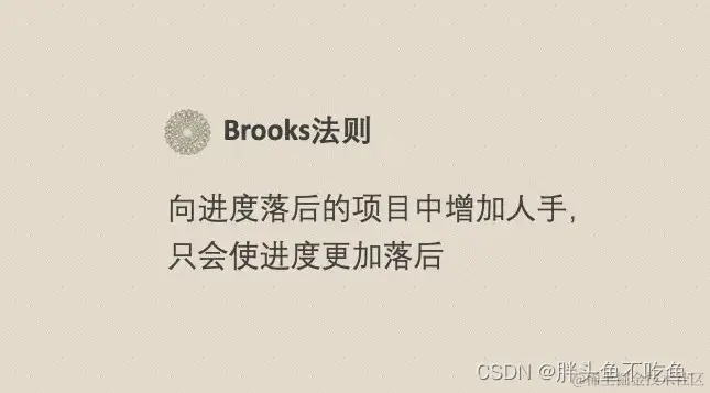 为了更快完成项目,开发团队会发展的极其庞大,以致于所有的时间都花费在沟通和变更决策上,反而让项目结束变得遥遥无期。